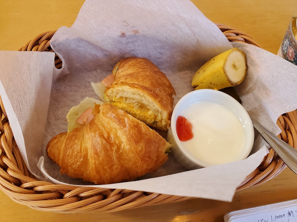 One of the standout features of Grand Café Jun is its delightful morning set. For the price of a drink, customers can indulge in a scrumptious croissant sandwich, accompanied by fresh yogurt and a slice of banana—an offer that has many patrons raving about its outstanding value. The croissant is a crisp, buttery masterpiece that shatters beautifully with each bite, leaving a delightful taste that lingers in your mouth. In fact, customers like わ“わっきー”よ have praised the café for its "amazing cost performance," and rightly so, as the quality of the food far exceeds the price.